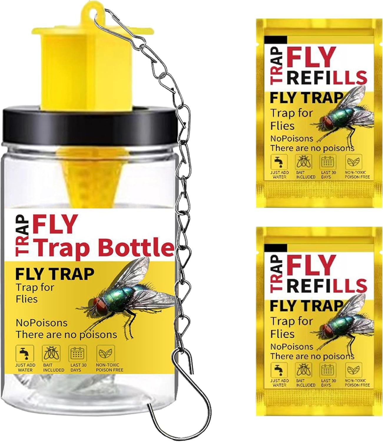 Reusable Outdoor Hanging Fly Trap Bottles with 2 Natural