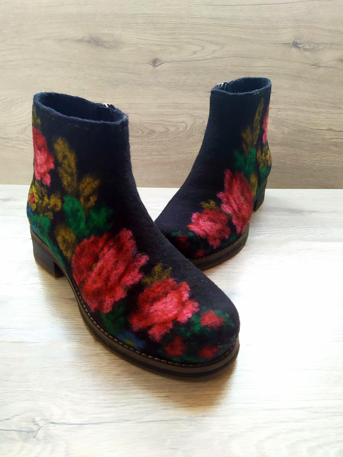 Felted boots women Floral boots women Natural wool ankle Etsy