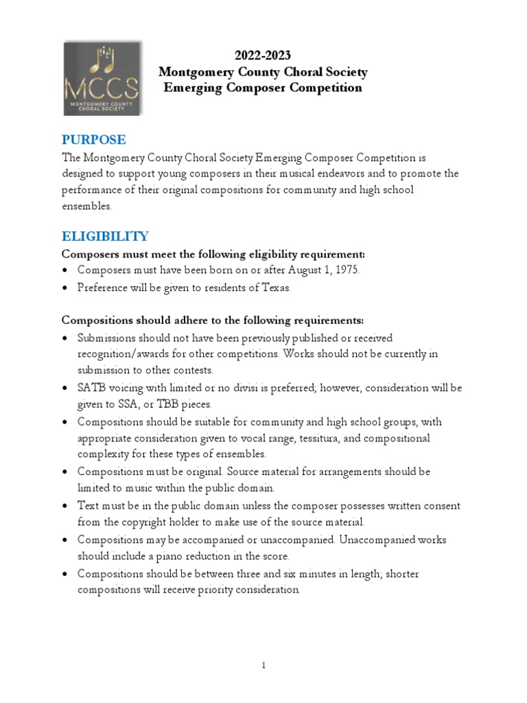 MCCS Emerging Composer Guidelines 2023 PDF Musical Compositions