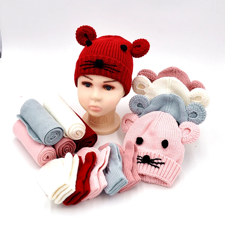 100 Acrylic Lovely Kids Hat Scarf And Baby Mitten Set Kid Neck Warmer