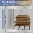 Shelf Dimensions    before you purchase or build shelves for your home, be sure to measure the area in which you want to place them. The standard closet shelf height is crucial to know when designing your closets. As a reference, standard shelf spacing is between 8 to 12 inches. Here are some of the other factors that will impact the dimensions. Shelf Dimensions.