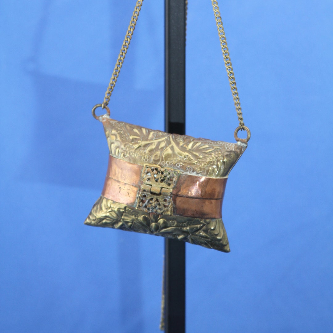 PILLOW PURSE Bags Vintage Sweet Pillow Purse Brass And Copper 93s Vintage Pillow Purse check out our vintage pillow purse selection for the very best in unique or custom, handmade pieces from our decorative. vintage brass pillow purse, copper accents hinged metal shoulder bag, blue velvet like lining metal strap 60s 30s shop women's gold size os mini bags at a discounted price at poshmark. fantastic vintage brass with copper. Vintage Pillow Purse.