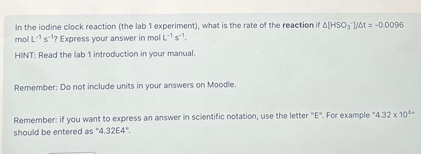 Solved In the iodine clock reaction (the lab 1 experiment),