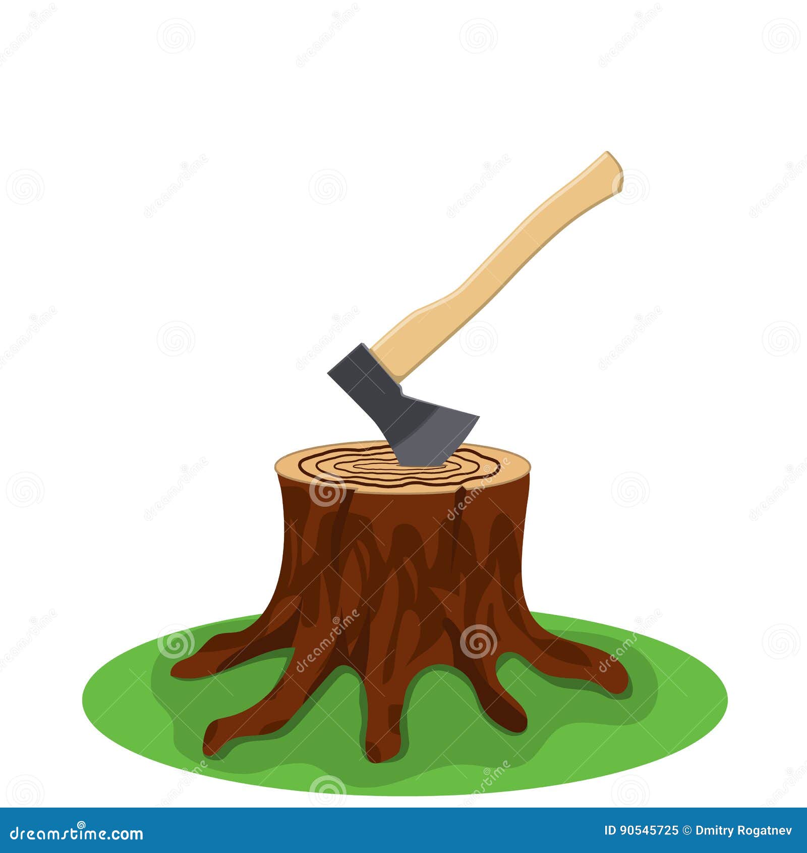 A Tree Stump with an Axe Stuck Stock Vector Illustration of cartoon