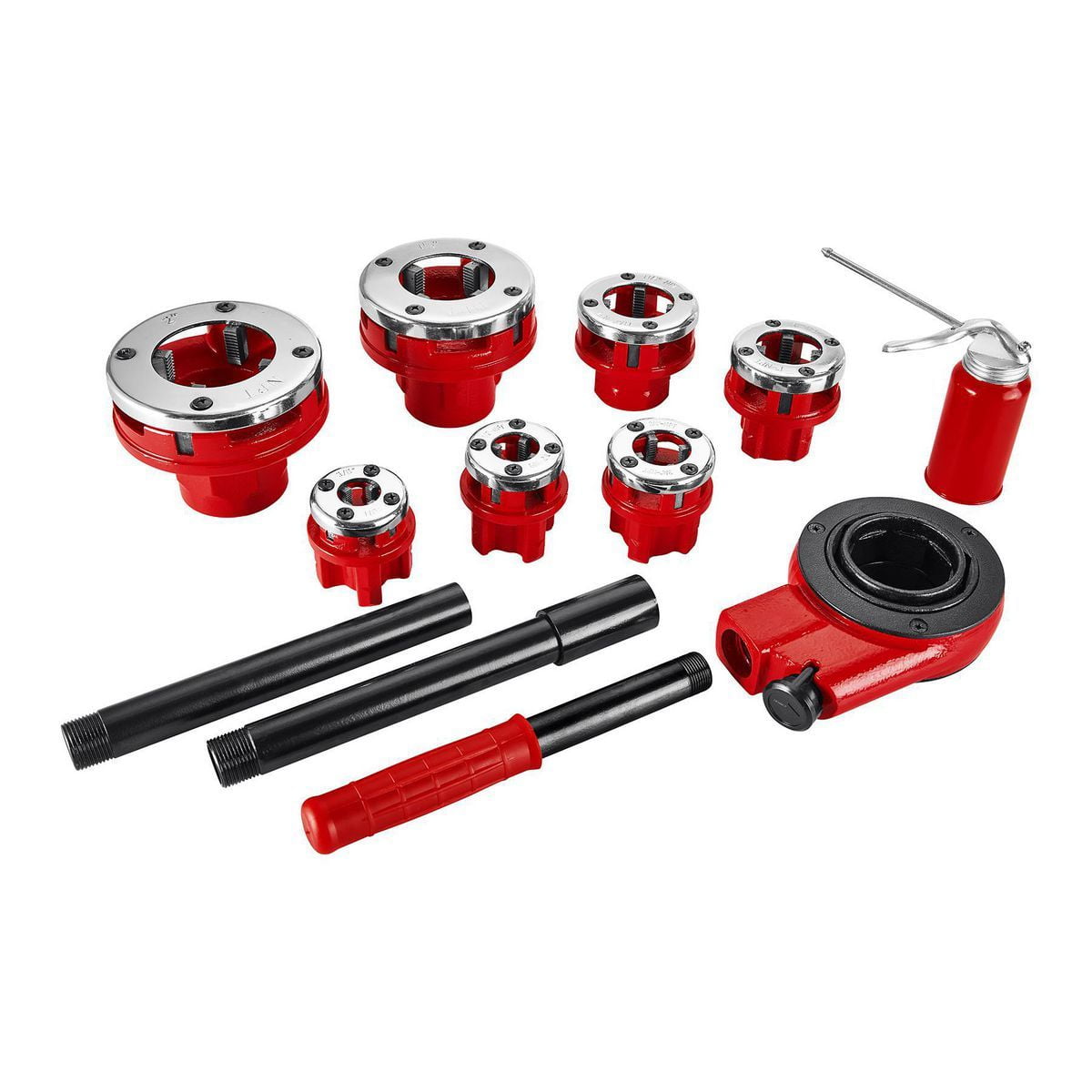 VEVOR Ratchet Pipe Threader Kit, 1/4" NPT 11/4" NPT Manual Best Ratcheting Pipe Threader Ratcheting pipe threader set, 5 pc for black pipe, 1/2 and 3/4. A ratcheting pipe threader consists of a long ratcheting handle that holds a circular die head at one end, which is a ring with several sets of teeth inside of it that cut the threads. Description use this professional ratcheting pipe threader to put a clean thread on. Best Ratcheting Pipe Threader.