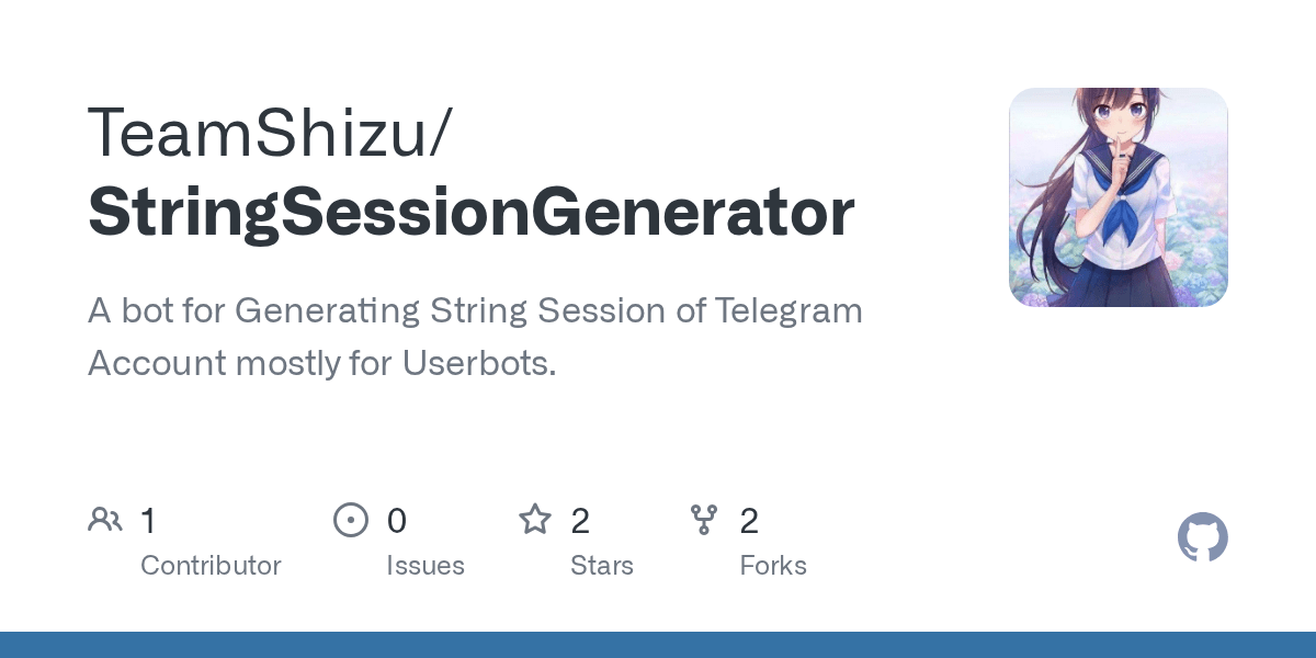 GitHub TeamShizu/StringSessionGenerator A bot for Generating String String Session Generator Bot You can see live bot in. A star ⭐ from you means a lot to us! If this does not work, try. 🤖 i'm a pyrogram and telethon string session generator. what can do this bot?⚙ telegram bot to generate pyrogram and telethon string session 🗝 join for updates @bluewhalebots telegram bot to generate pyrogram and telethon. String Session Generator Bot.