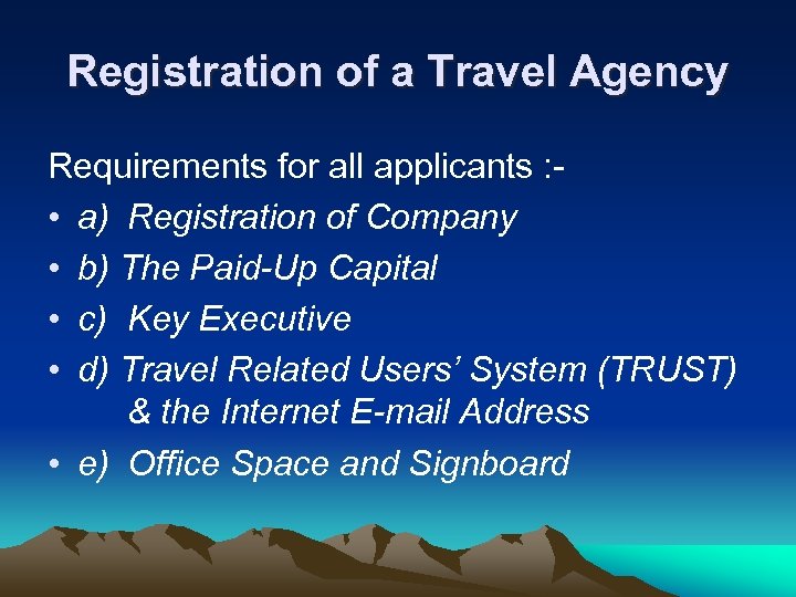 Establishment of a Travel Agency What is