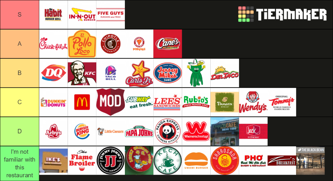 Fast Food Orange County Edition Tier List Rankings) TierMaker
