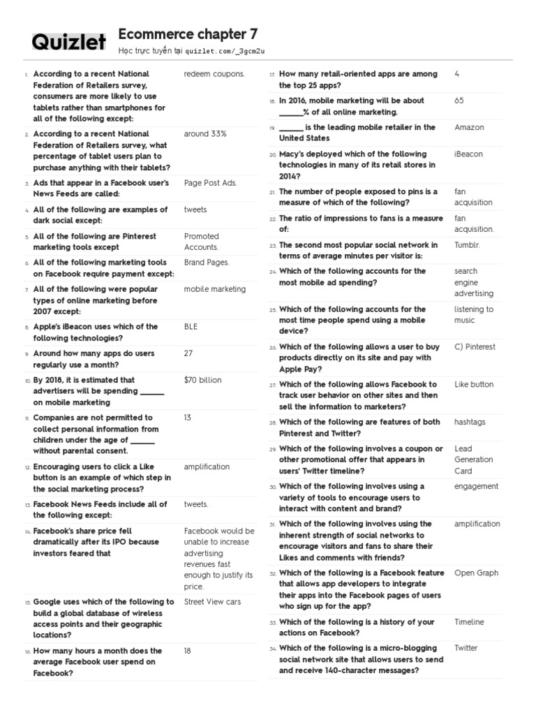 Quizlet PDF Facebook Online Advertising