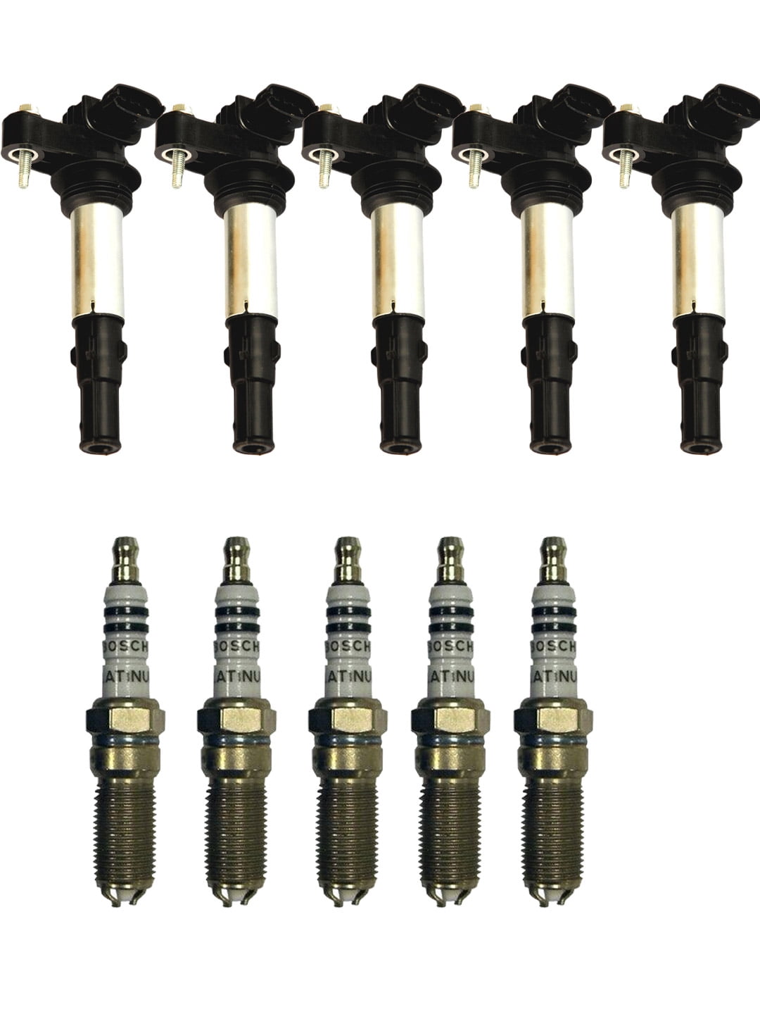 Set of 5 ISA Ignition Coil and 5 Bosh Spark Plug Compatible with 2008