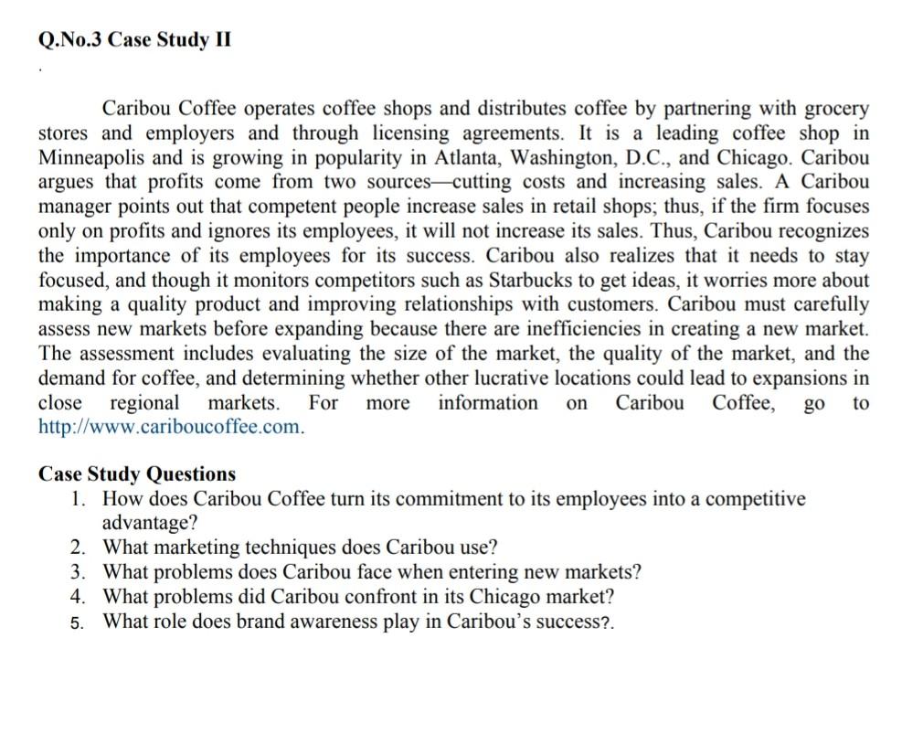 Solved Q.No.3 Case Study II Caribou Coffee operates coffee
