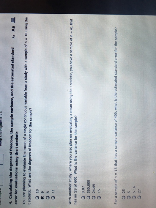 Solved . The t statistic, the t distribution, and sample Calculate Error Degrees Of Freedom Typically, degrees of freedom are equal to your sample size minus the number of. How you calculate degrees of freedom varies depending on what you are estimating. The error mean sum of squares, denoted mse, is calculated by dividing the sum of squares within the groups by the error degrees of freedom. It’s calculated as the sample size minus the. Calculate Error Degrees Of Freedom.