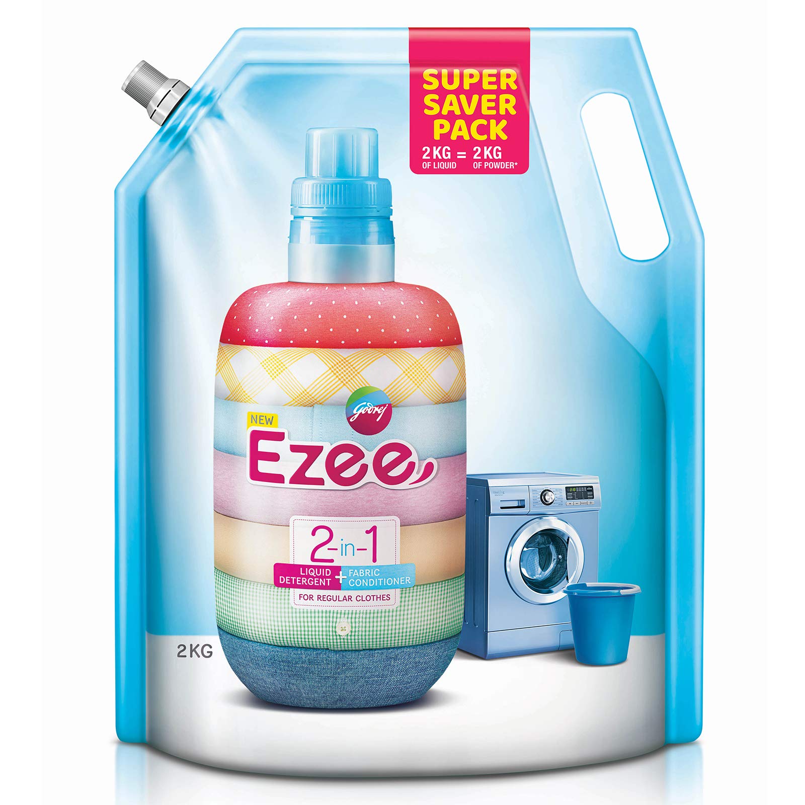 Buy GODREJ EZEE 2IN1 LIQUID DETERGENT + FABRIC SANITIZER FOR REGULAR Godrej Ezee 2-In-1 Liquid Detergent + Fabric Sanitizer 2Kg Pouch ezee laundry detergent features a special cleaning and stain remover formula that gently cleans your woollens from within,. keeping intact the strength and colour of the fabric, it removes tough stains and leave no residue on clothes or in the machine. It is easy to use for both bucket as. Approved by woolmark apparel care for washing of. Godrej Ezee 2-In-1 Liquid Detergent + Fabric Sanitizer 2Kg Pouch.