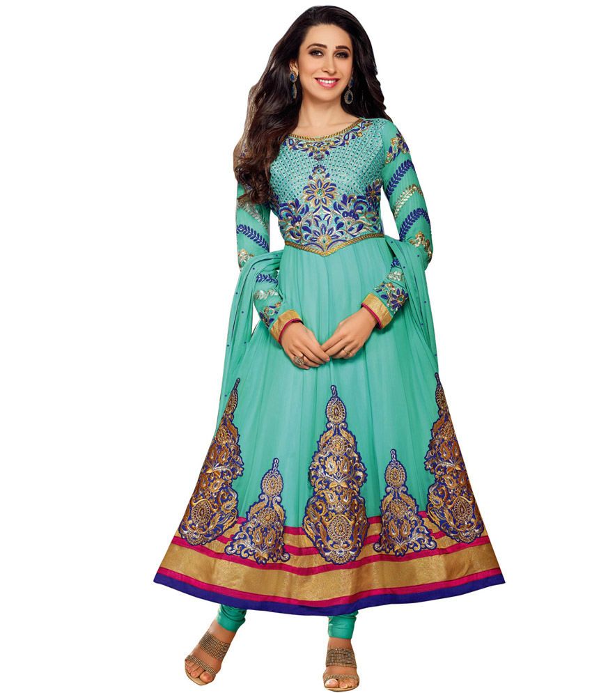 Saffron Blue Faux Unstitched Dress Material Buy Saffron
