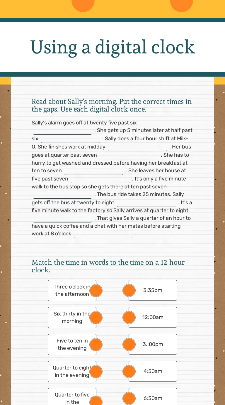 Using a digital clock Interactive Worksheet by Louise Peel Wizer.me