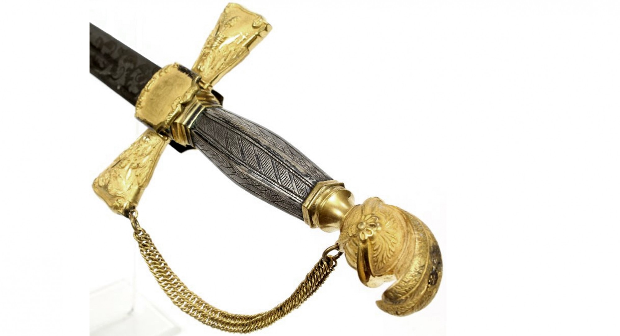 A Masonic or Society Sword with Plain Slender Blade, Gilt Hilt with Cruciform Guard This type of ottoman saber, with its distinctive curled “pistol grip” and cruciform guard, was used throughout turkey and north africa. Found in various shapes, they protected the wielder’s hand by blocking enemy blows. On the other hand, the quillons are the arms of the crossguard on either side of the blade. a crossguard is a type of guard. Cruciform Guard.