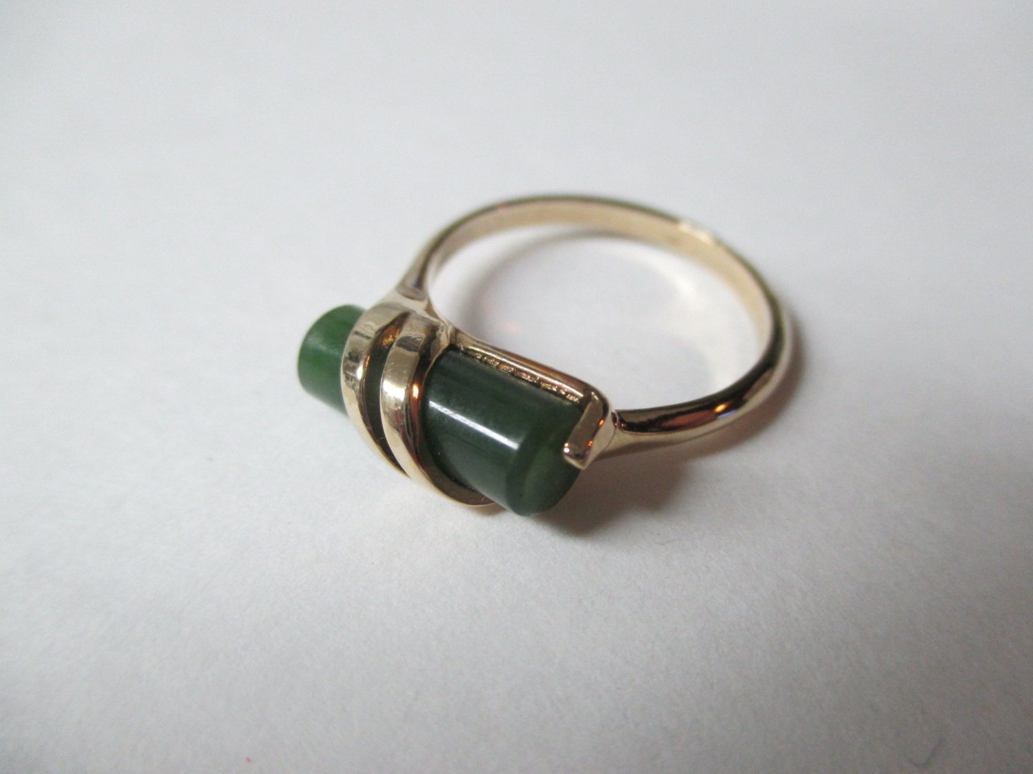 Avon Gold Tone Captured Jade Ring 1978 Mint Never worn No box