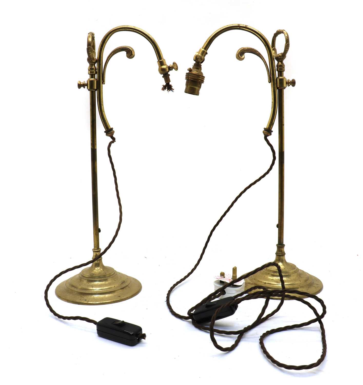 Lot 171 A pair of adjustable brass table lamps,