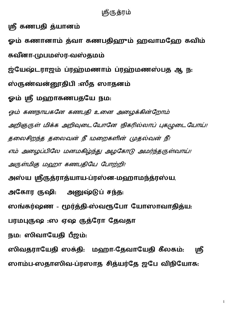 Sri Rudram Meaning Tamil For Reading PDF