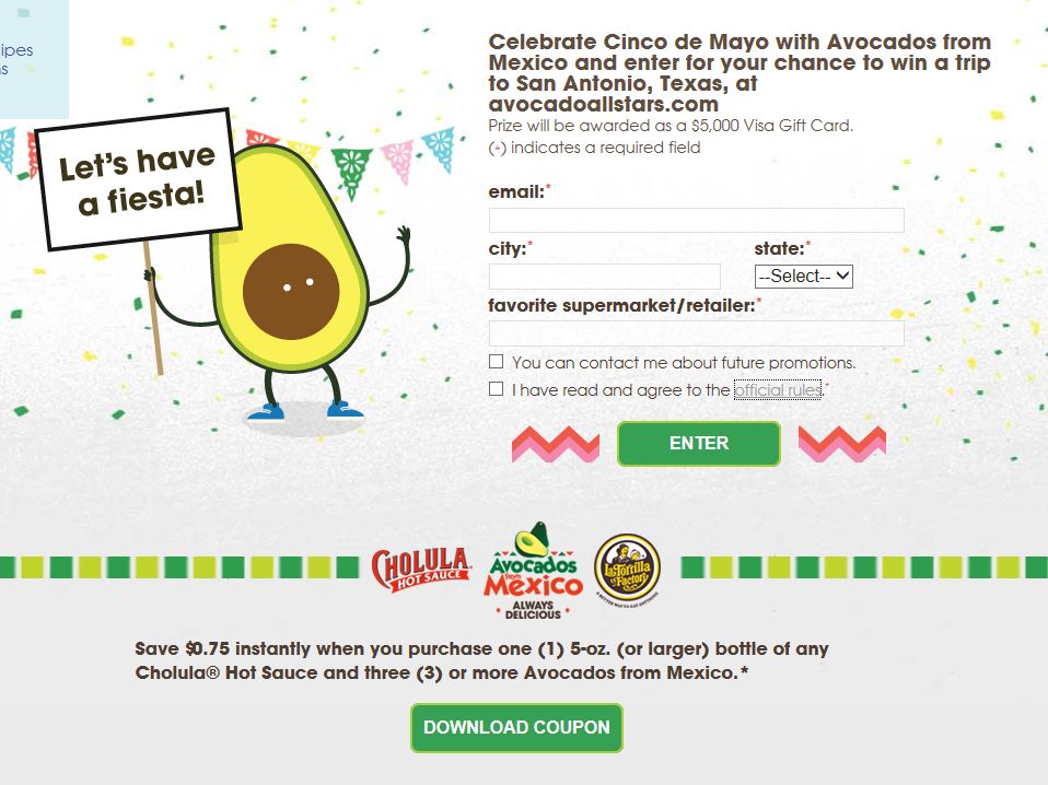 Avocados from Mexico Let’s Have a Fiesta Sweepstakes