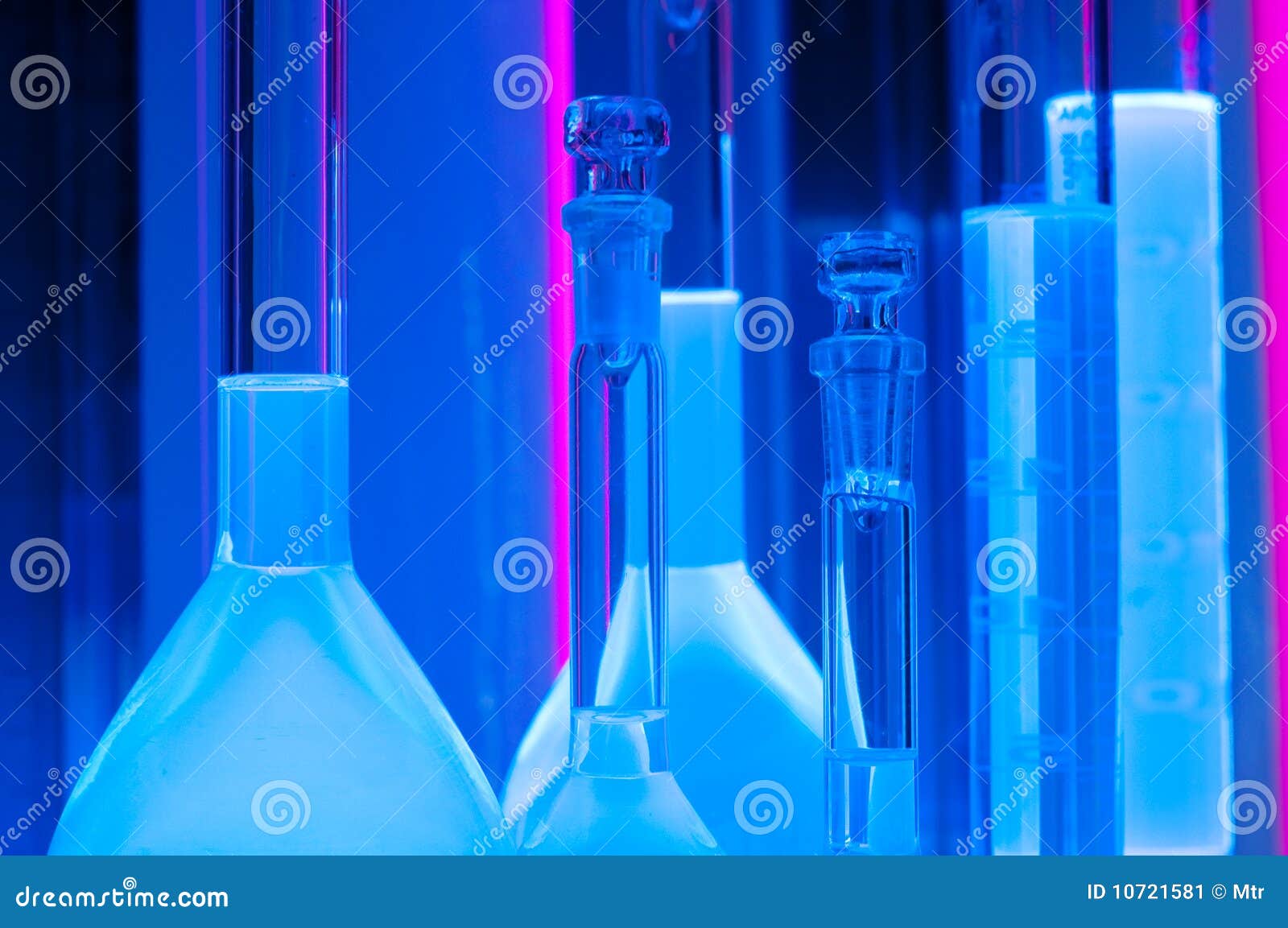 Test tubes in blue light stock image. Image of experiment 10721581