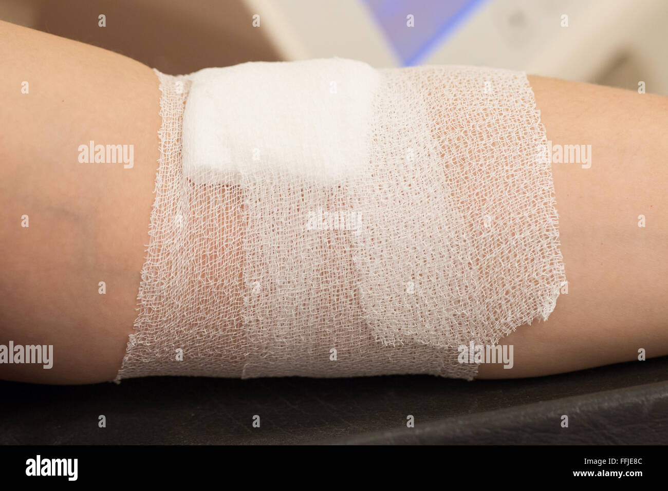Blood donation process, woman with bandage on her arm Stock Photo Alamy Blood Donation Bandage How Long Be sure to keep your bandage dry, and don’t remove until at least five hours after your donation. Keep the strip bandage on for the next several hours; To avoid a skin rash, clean the area around the bandage with soap and water. We recommend whole blood donors take a low dose of iron (e.g., 18mg) for 60 days after. Blood Donation Bandage How Long.
