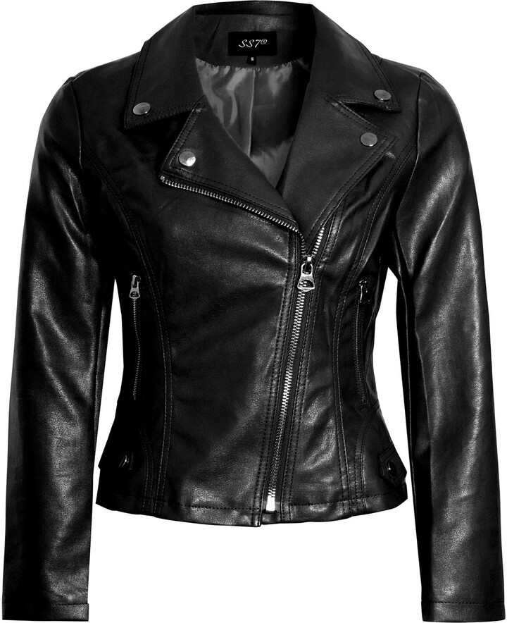 SS7 Womens Faux Leather Biker Jacket Plus Sizes Black ShopStyle