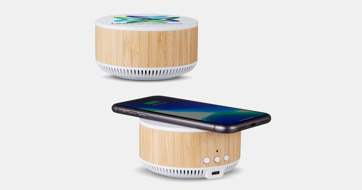 Portia Wireless Charger And Speaker with your logo