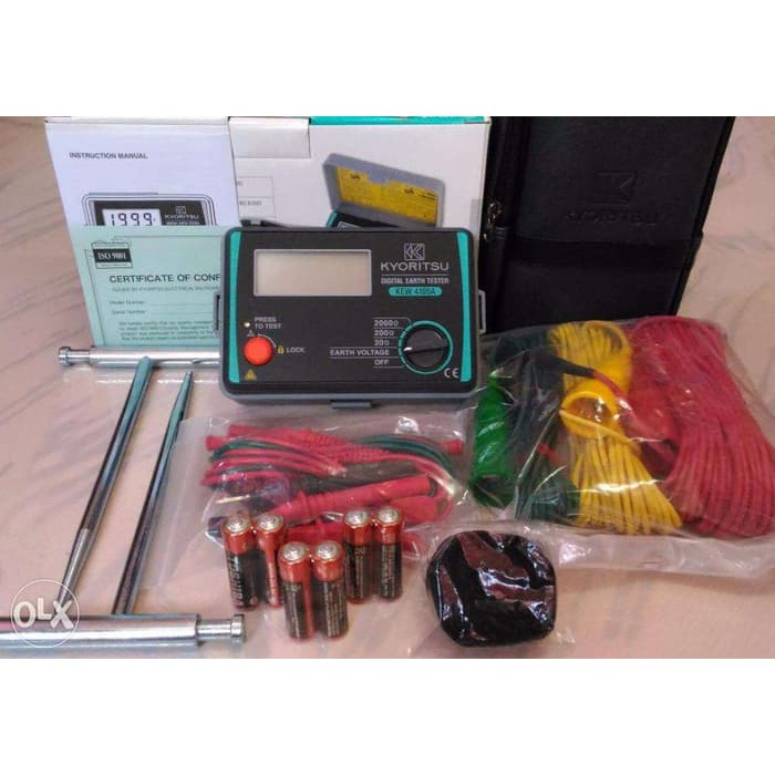 Jual KYORITSU 4105AH HARDCASE DIGITAL EARTH GROUND TESTER 4105AH Earth Ground Tester Kyoritsu *20 ω range 10k ω, 200 ω range 50k ω, 2000 ω range 100k ω. Earthing test i ground test i earth resistivity test i earthing tester i testing of ground resistance for lighting protection1. Earth measurements are possible up to 100kω* of auxiliary earth spikes resistance. The earth resistance from 0.05 to 1500ω can be measured without the auxiliary. Earth Ground Tester Kyoritsu.