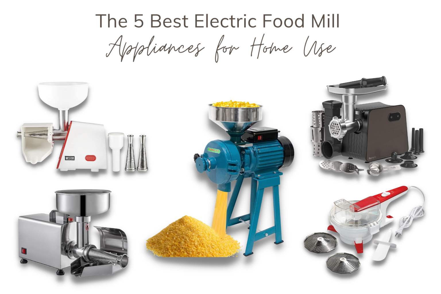 Electric Food Mill 610201W Weston Brands Electric Food Mill A food mill is a kitchen gadget designed to puree, mash, and strain ingredients with ease. An electric mill typically uses an impeller to feed food to a perforated horn, which strains your puree’s unwanted bits of skin, seeds, and stems. As you turn the crank, the food is forced through the disc, resulting in a smooth and uniform texture.. Electric Food Mill.