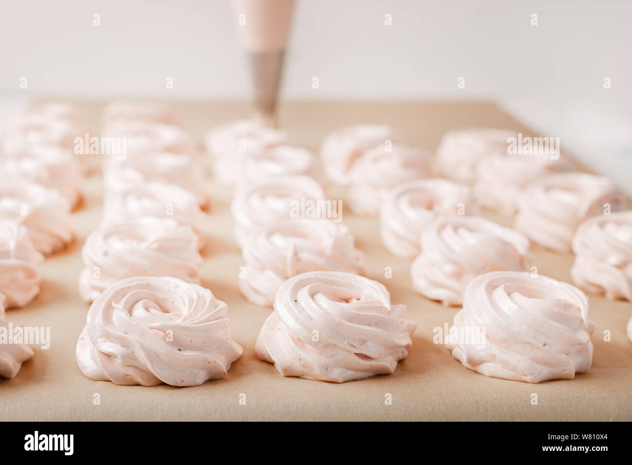 Making French Meringue Cookies on Parchment Paper Stock Image Image Meringue Sticking To Parchment Paper If your meringue is still sticking to greaseproof paper, spray a little water on the paper before spreading it out. Sticky after storing on a contoured space Although parchment paper is ideal, there are a number of acceptable substitutions. Several tricks may rescue cookies or cake stuck to greaseproof paper. Once cool, you can take them out. Covering them with. Meringue Sticking To Parchment Paper.