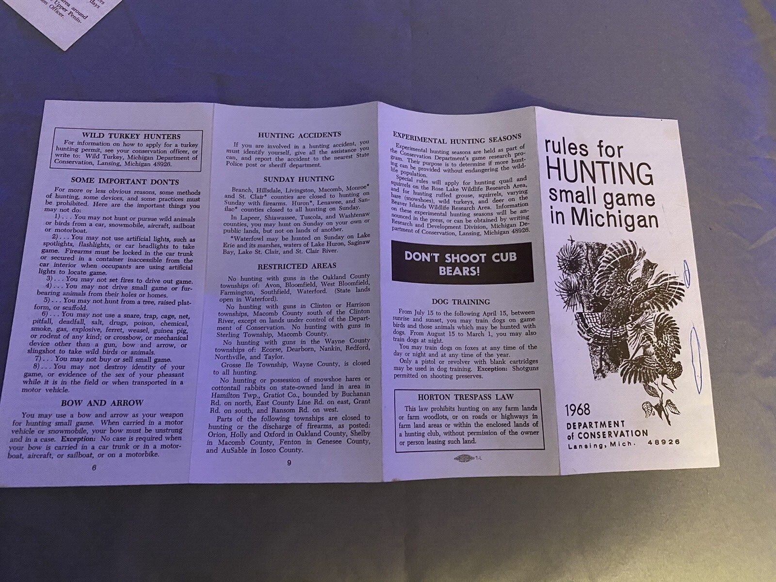 1968 Michigan Small Game and Waterfowl Hunting Rules Pamphlets DNR eBay