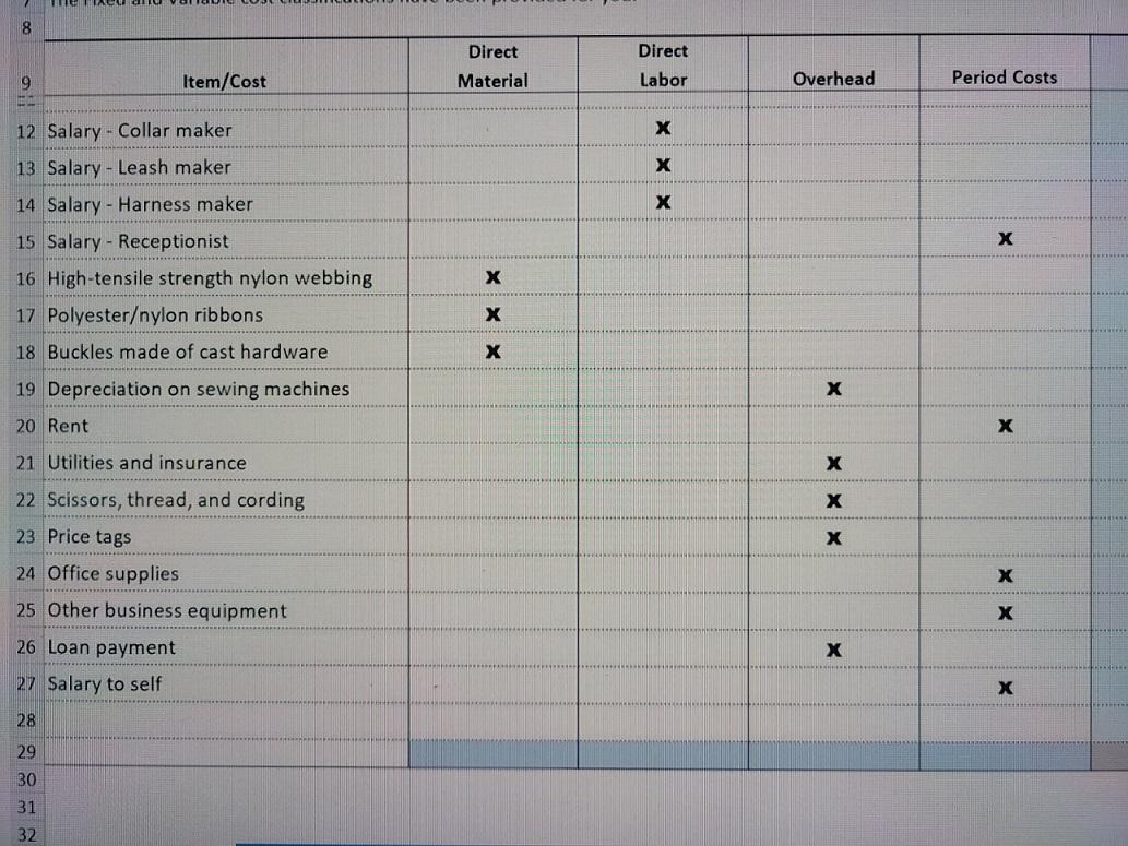 Solved Can you check if I classified the costs