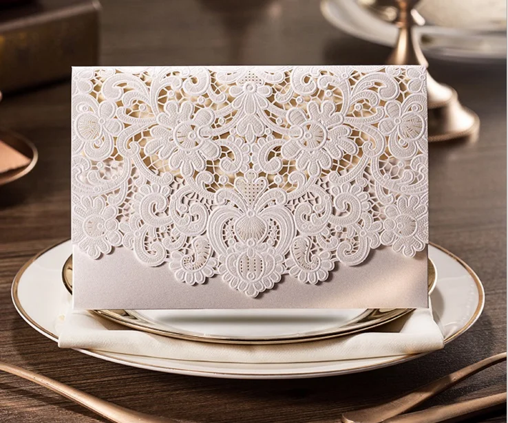 300pcs/lot Hot wedding favor White Embossed Flower wedding invitation