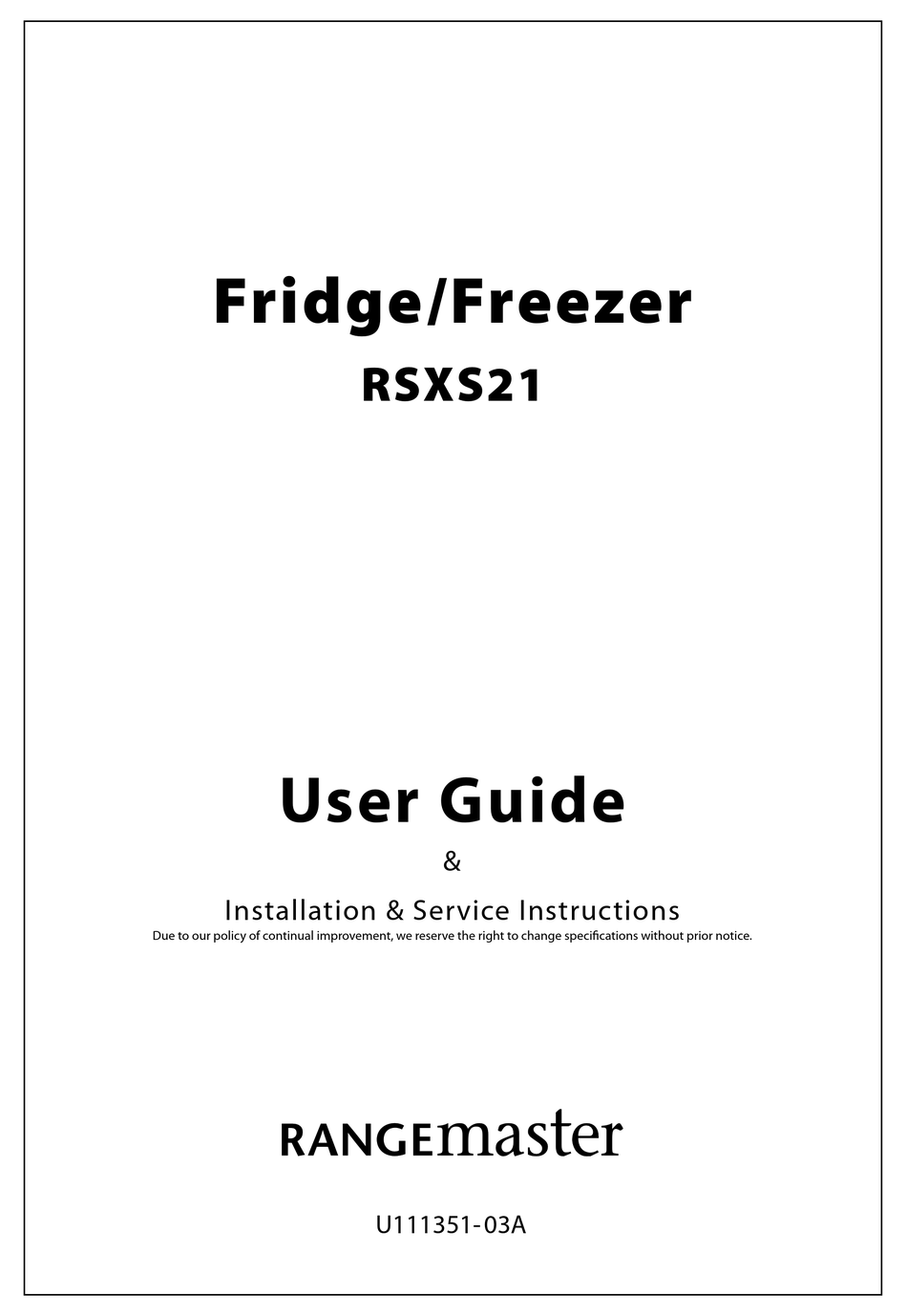 RANGEMASTER RSXS21 USER MANUAL & INSTALLATION & SERVICE INSTRUCTIONS