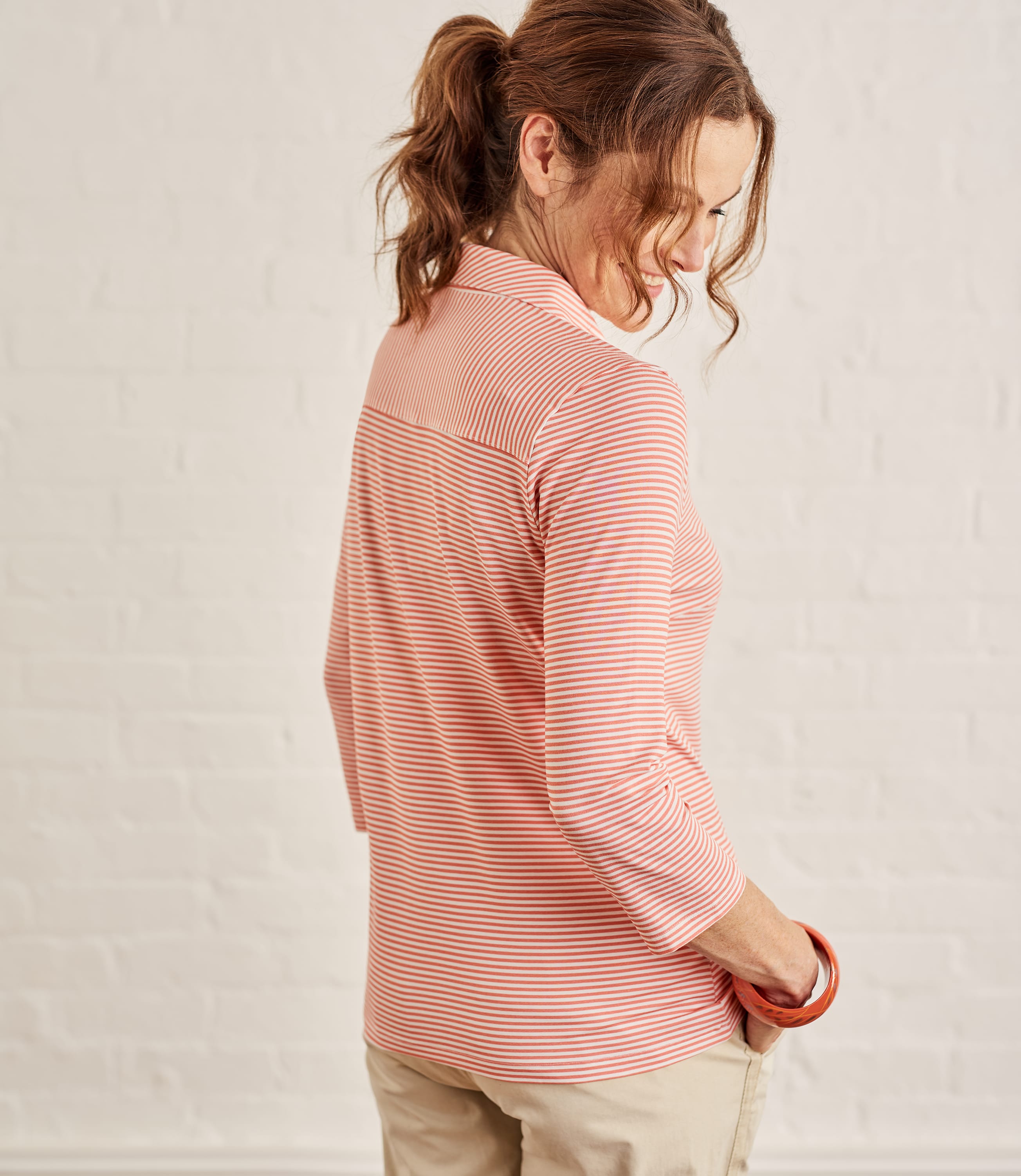 Coral/White Womens Jersey Print 3/4 Sleeve Shirt WoolOvers UK
