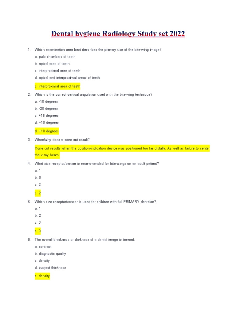 Dental Hygiene Radiology Study Set 2022 PDF