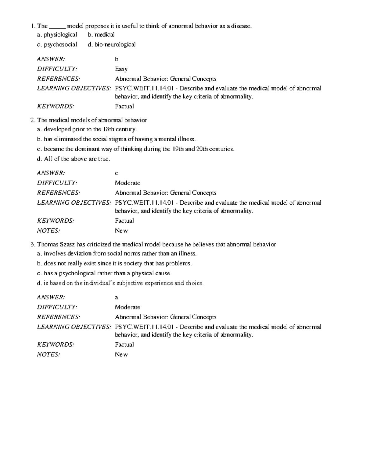 Chapter 14 Psychological Disorders Exam 1. The model proposes it is