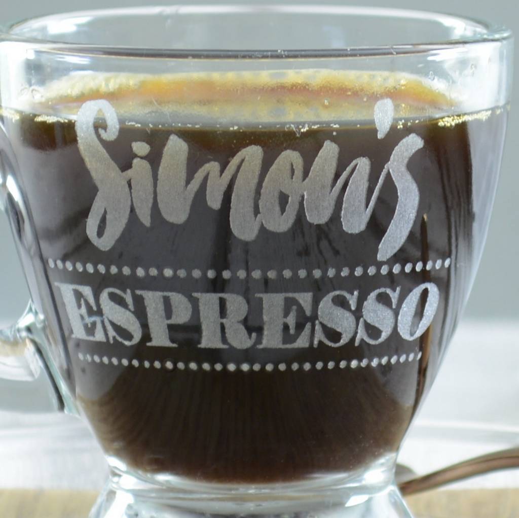 personalised engraved glass espresso cup and saucer by chalk and cheese Personalised Espresso Cup And Saucer Check out our personalized espresso cup and saucer selection for the very best in unique or custom, handmade pieces from our mugs shops. These custom printed espresso cups are accompanied by a saucer, and are perfect for sprucing up your work day. These printed espresso cups are accompanied by a saucer. Choose from a single, 2 or 4 pack of. Personalised Espresso Cup And Saucer.