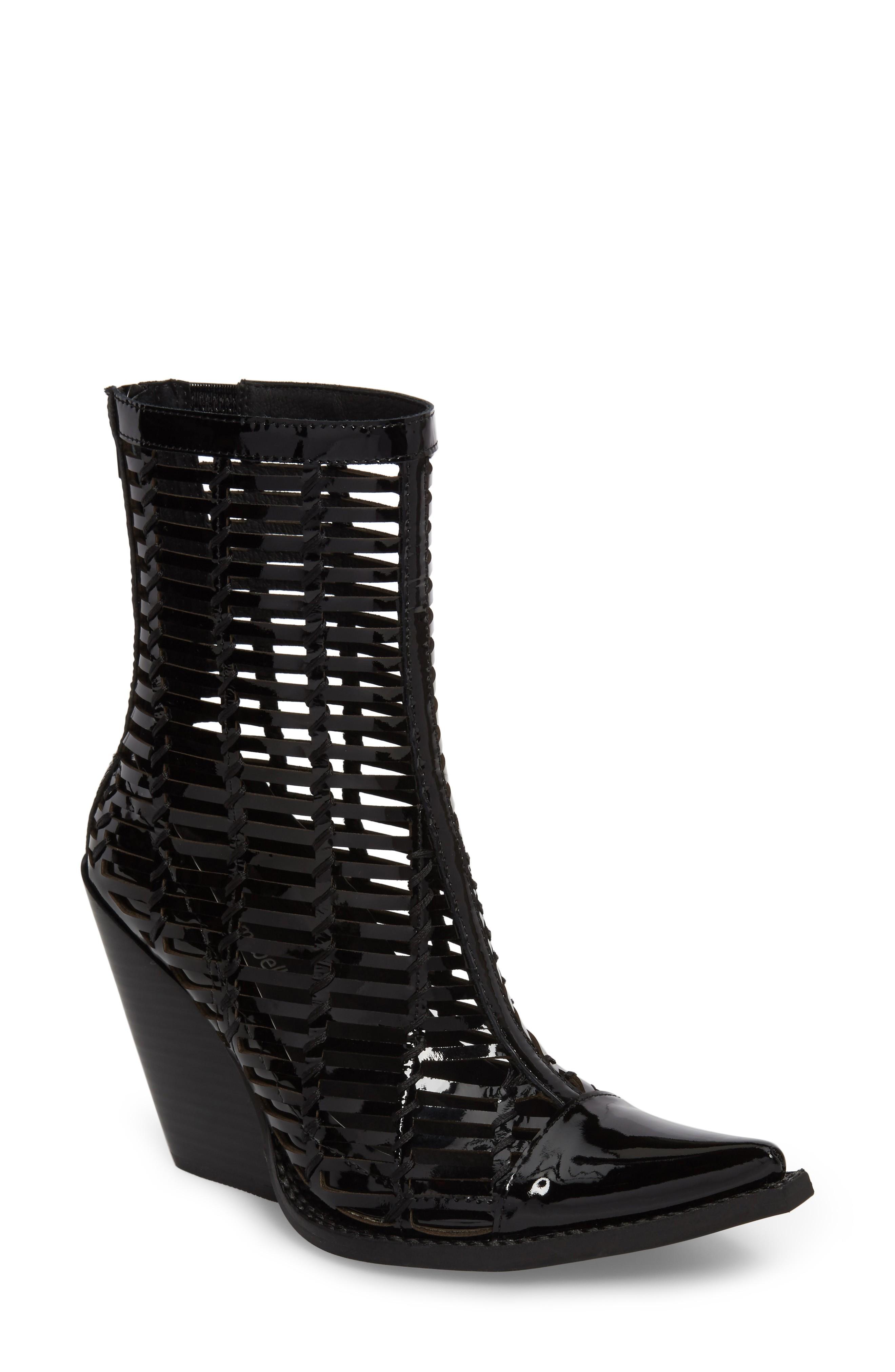 Jeffrey Campbell Gunmetal Cage Bootie In Black Patent Leather ModeSens