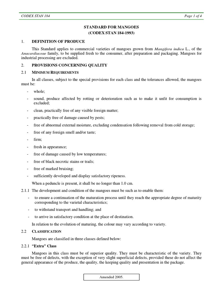 Standard For Mangoes (Codex Stan 1841993) Definition of Produce PDF