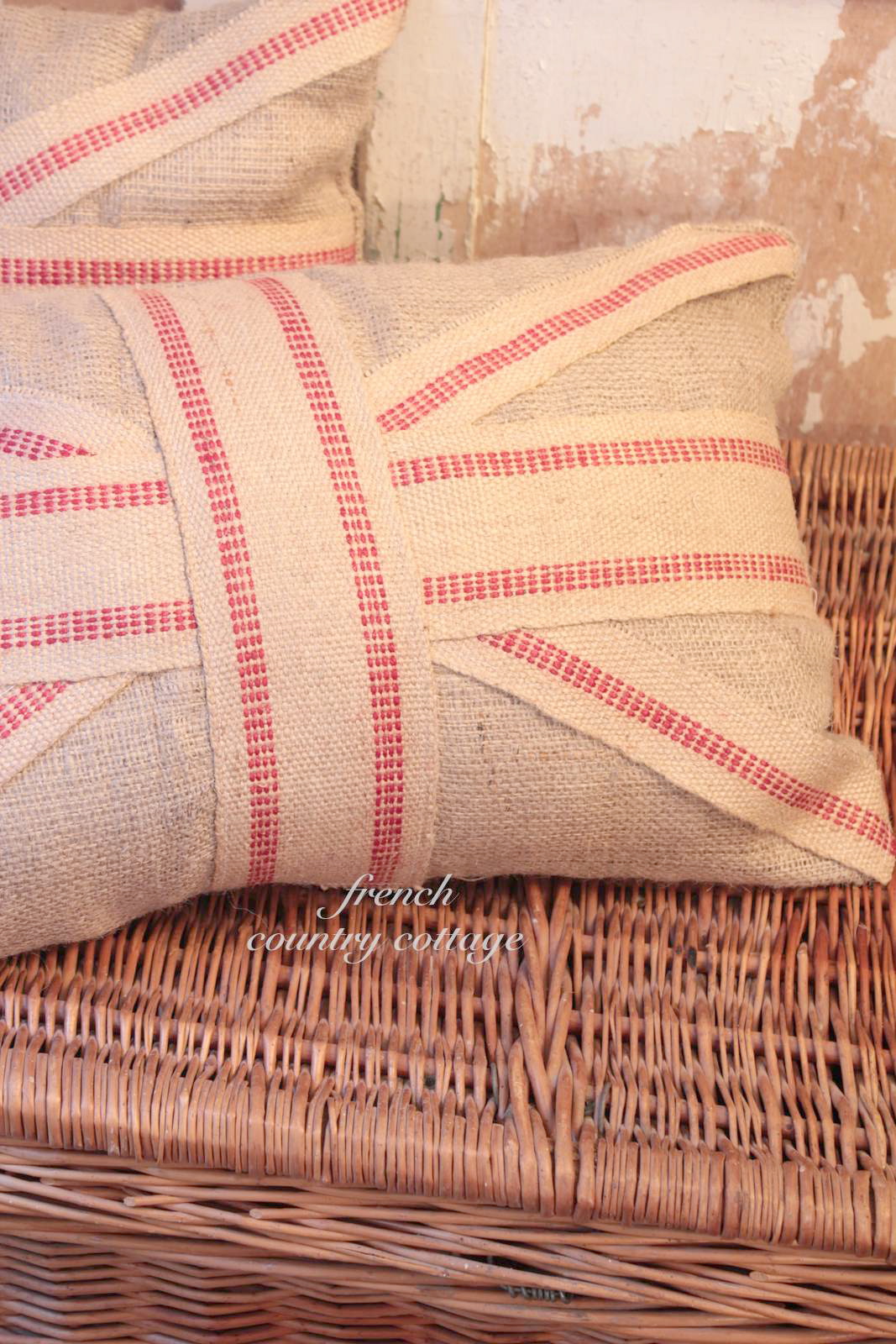 Burlap Union Jack Pillows FRENCH COUNTRY COTTAGE
