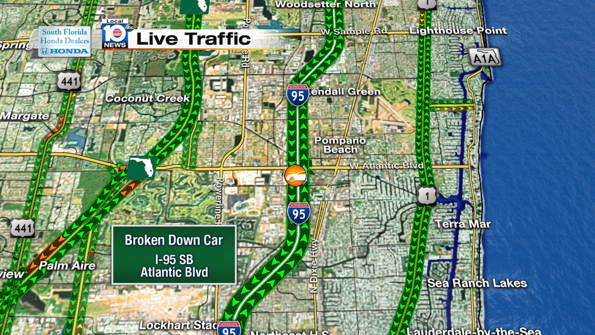 Broken down car on I95 SB and Atlantic Blvd TRAFFIC WPLG Local 10