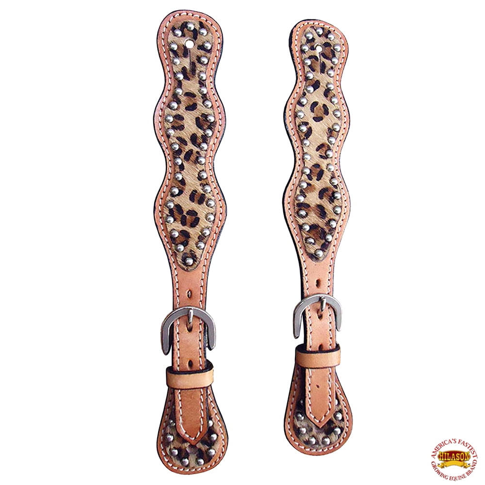 Hilason Western Leather Spur Straps Leopard Cheetah Hair On Leather
