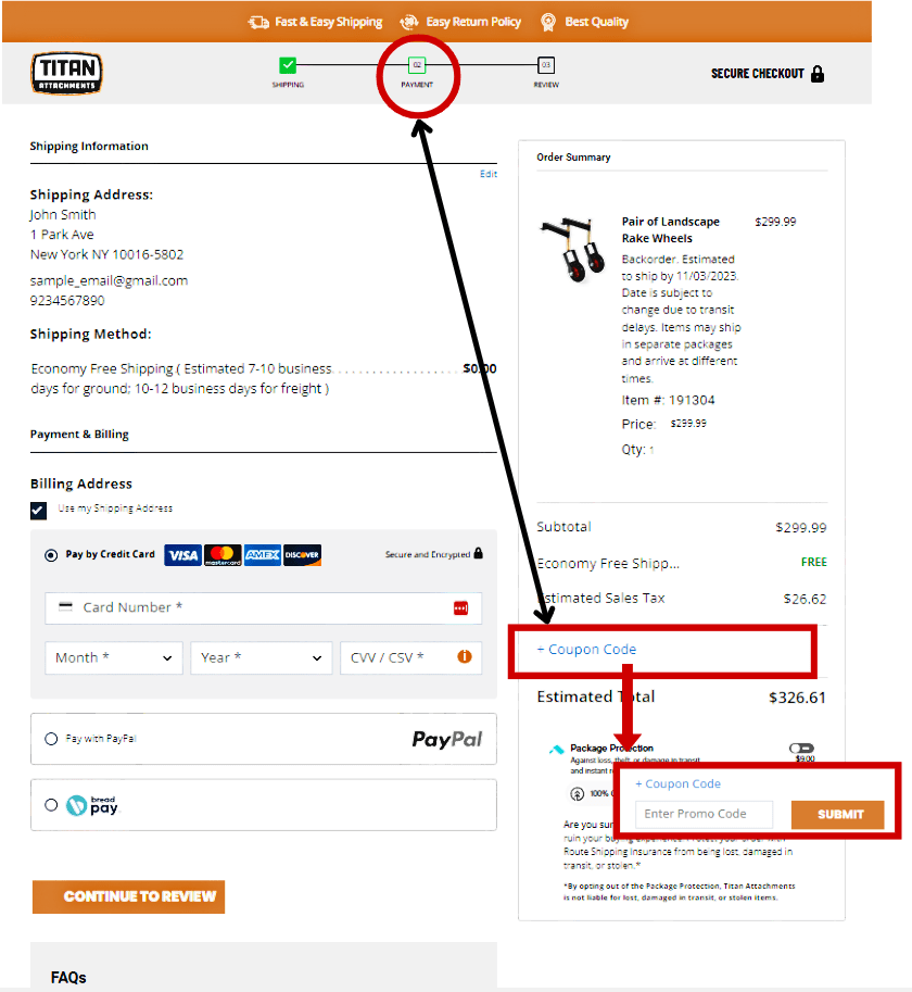 Applying Coupon Codes upon Checkout Titan Attachments