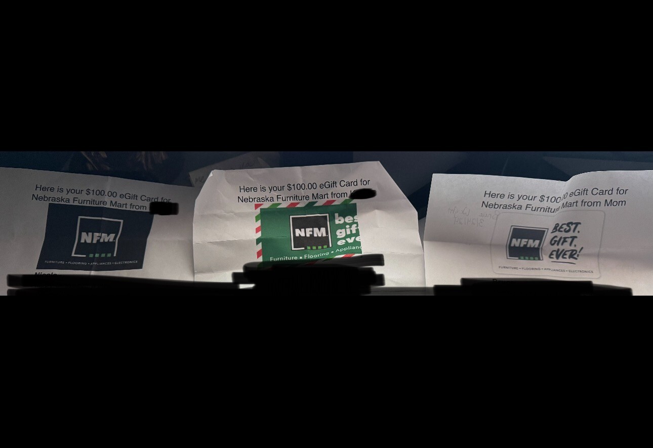 3 Nebraska Furniture Mart Gift Cards. 100 on each. eBay