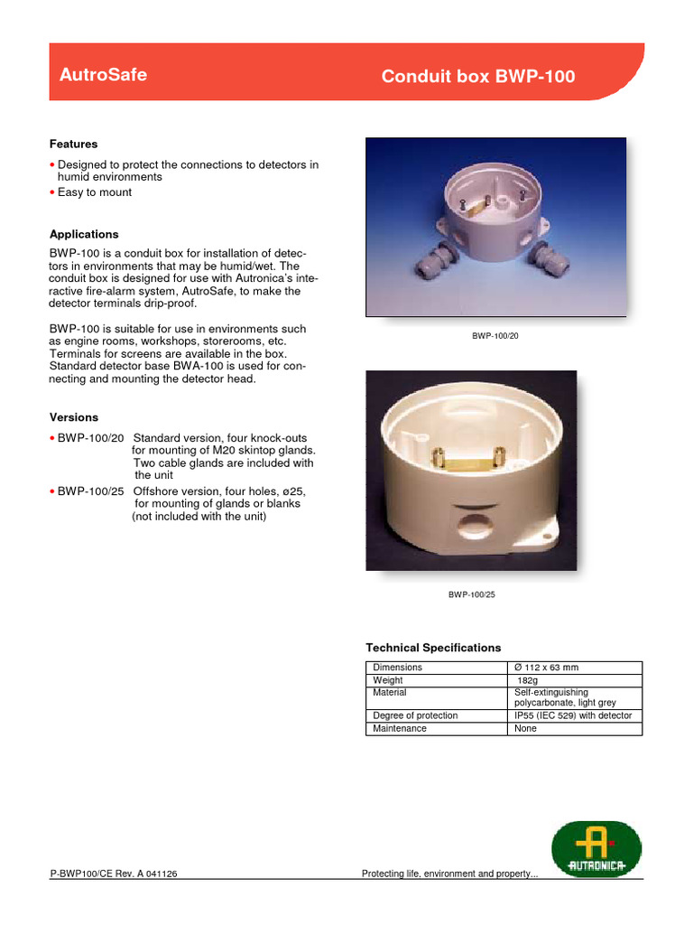 BWP100_Detector Conduit Box PDF Electrical Engineering Equipment