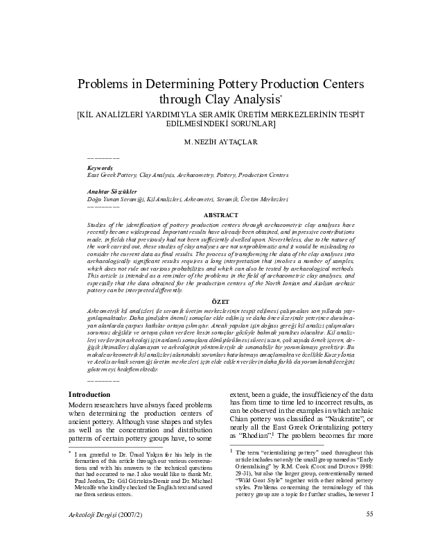 (PDF) Problems in Determining Pottery Production Centers through Clay