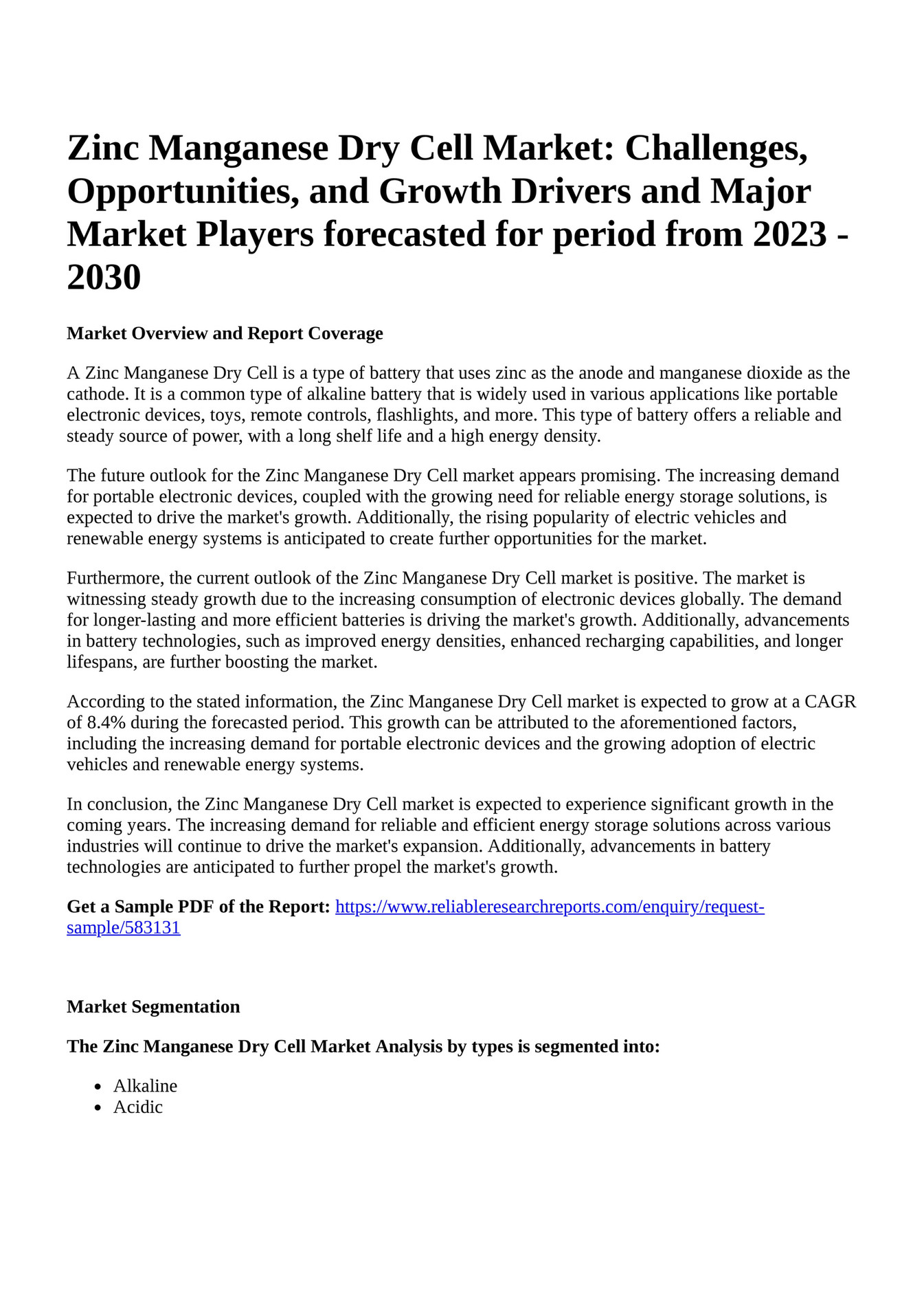 Reportprime Zinc Manganese Dry Cell Market Challenges, Opportunities