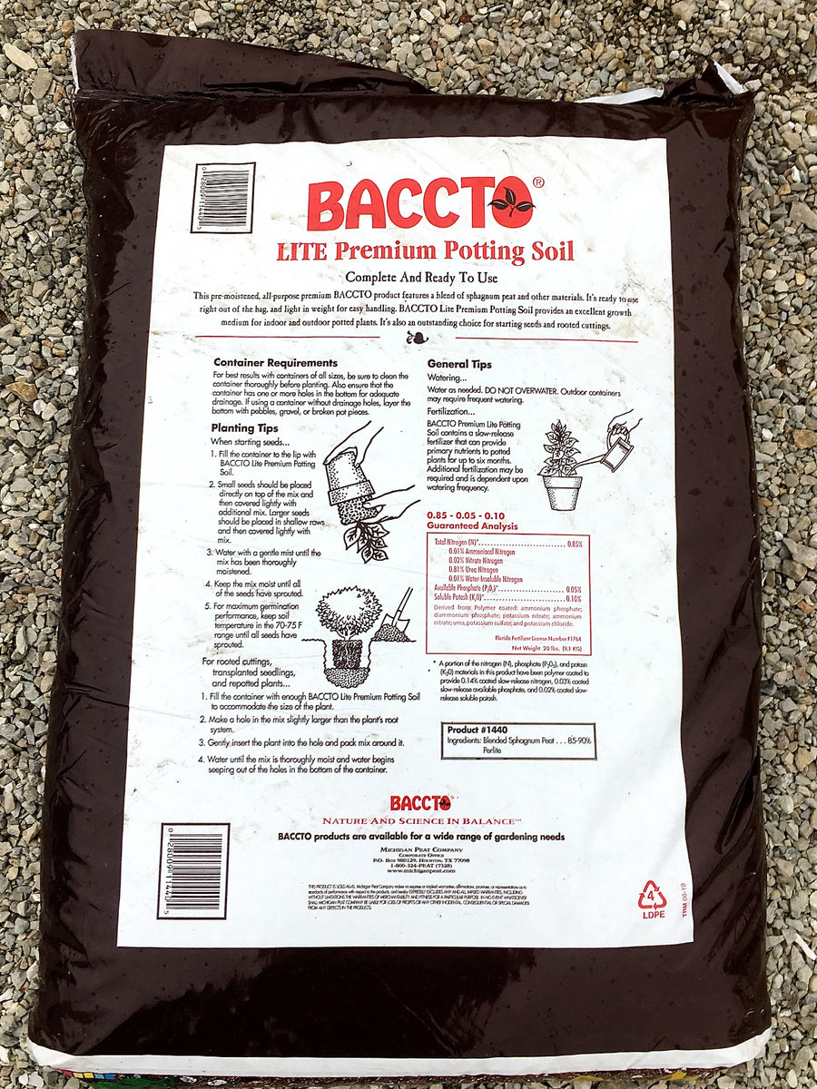Michigan Peat Company Michigan Peat 1440 Baccto Lite Premium Potting Baccto Potting Soil Ingredients The blend ensures successful growth for vegetables or flowers in. The blend ensures successful growth for vegetables or flowers in. The blend ensures successful growth for. Perfect as a general purpose potting soil. Ideal for growing in containers or beds. Ideal for indoor or outdoor use. Ready to use out of the bag. Ready to use out of the bag.. Baccto Potting Soil Ingredients.